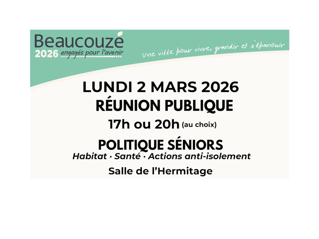 Venez assister à la réunion publique sur la politique Séniors le lundi 2 mars à 17h ou 20h au choix.